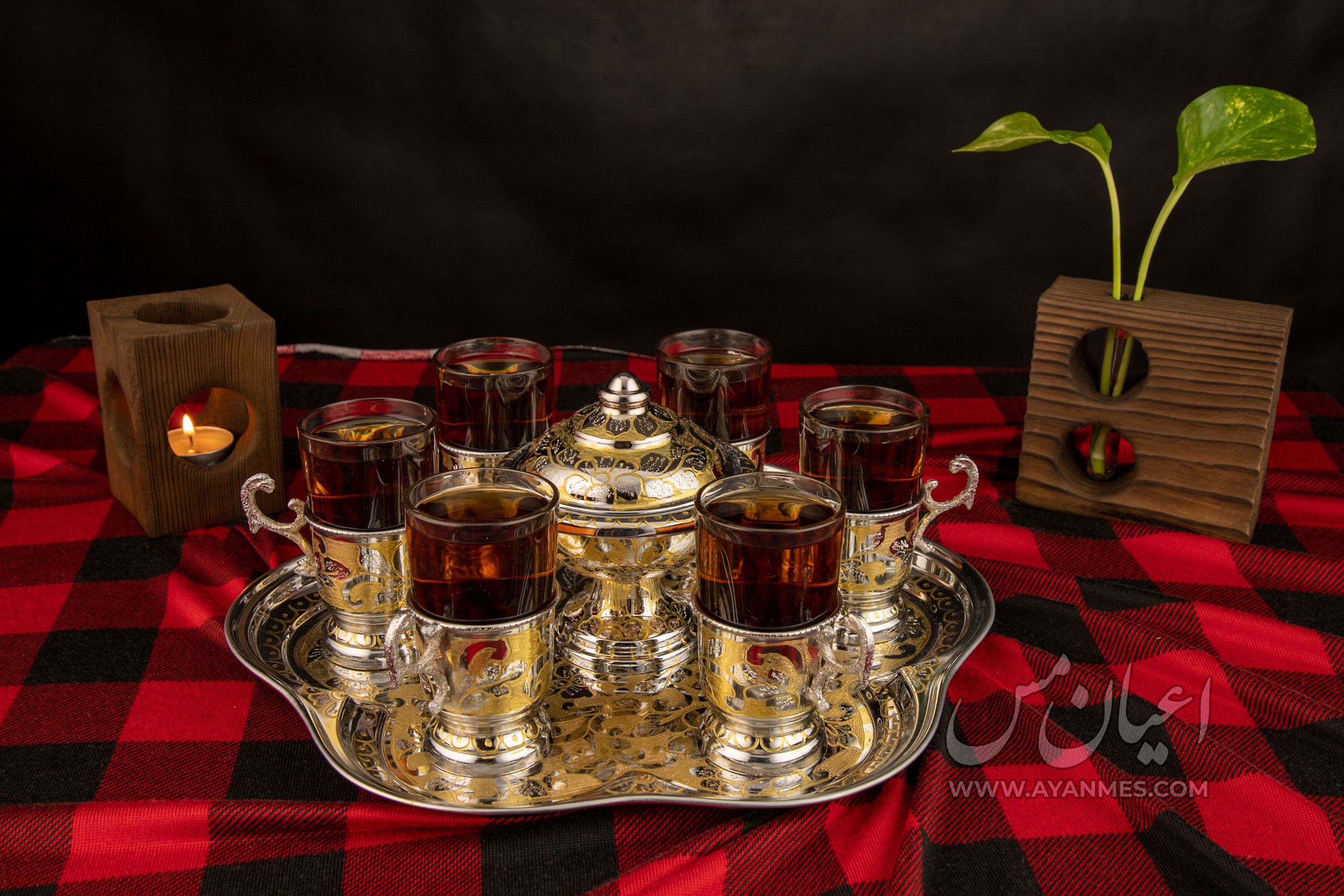 استفاده از یک سرویس چای خوری زیبا برای پذیرایی از مهمان یکی از عوامل تاثیرگذار بر شیک و زیباتر دیده شدن لوازم پذیرایی شما میشود. سرویس چایخوری اعلا شامل گیره استکان، سینی و قندان میباشد. این ست یکی از زیباترین ستهای موجود در اعیان مس است که در سه رنگ آنتیک، طلایی و کروم به فروش میرسد. البته برای استفاده روزمره توصیه ما انتخاب رنگ کروم است. چراکه این رنگ از ثبات رنگ بالاتری نسبت به بقیه رنگها برخوردار است و مدت بیشتری بدون تغییر رنگ قابل استفاده خواهد بود.