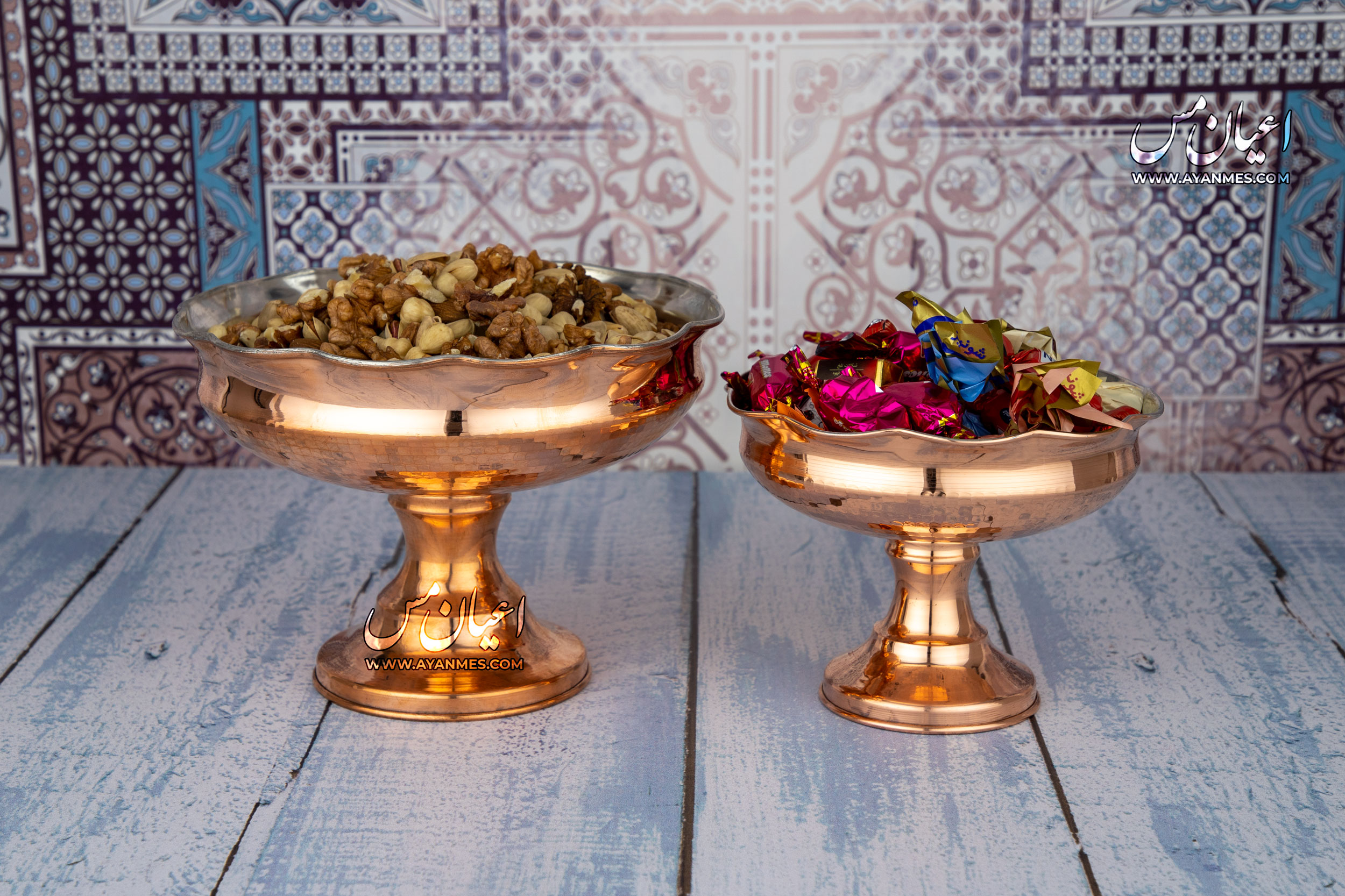 آجیل و شکلات خوری مسی مدل دیبا داخل قلع