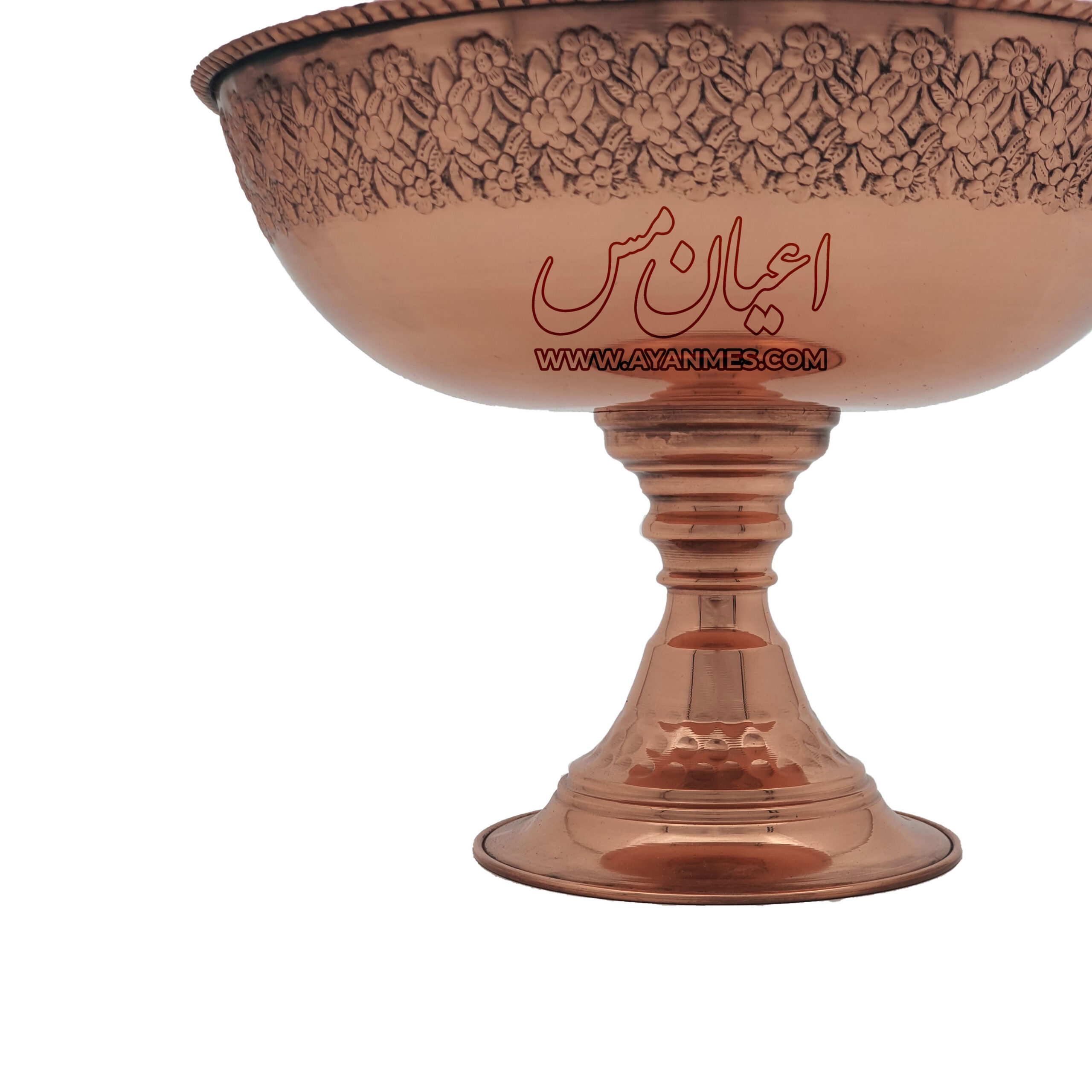 - ابعاد: جام مسی مدل رز قطری برابر با 28 سانتیمتر و ارتفاع 21 سانتیمتر دارد.